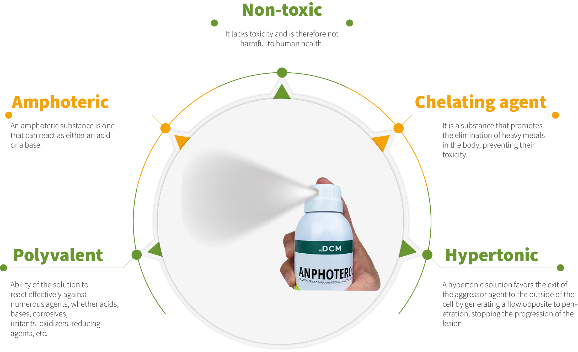 Amphoterol® is a new line of first aid products designed to protect the safety and well-being of people who work with chemicals every day. We are committed to providing an effective solution for chemical accidents, meeting high quality standards and maintaining a safe work environment, while offering comfort and relief to the end user. To achieve this, we have developed an innovative product with biodegradable components, based on the principles and compounds found in the human body.